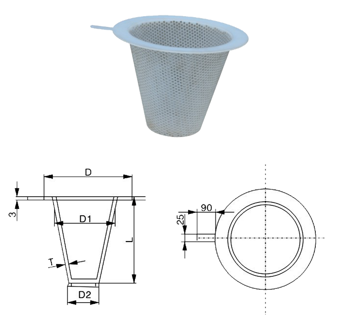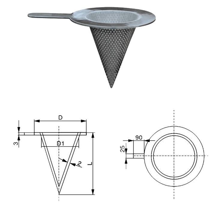 外形尺寸(尖底臨時(shí)過(guò)濾器):